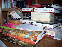 I’m being overtaken with piles of unorganized messes. Here’s a picture worth many words. As you can tell from the chaos on one corner of my desk I have books to return, books to lend, notes to send, papers to throw away, lessons to prepare, lists of magazines to send articles, school papers to file, books to study and handwritten notes to put on a calendar. There are many good intentions scribbled on note cards that are left undone.