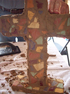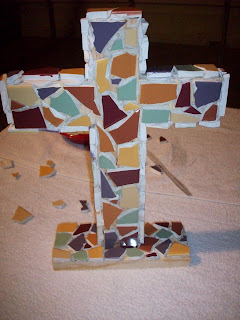 OK – the cross didn’t start out as much. But you’ll love it by the end. The team wrote their prayers for the weekend on the back of tiles. (you can barely see them they are in pencil) I took the tiles and broke them into smaller pieces to build the cross. The tiles symbolize us: we are broken, different, a little rough around the edges and fragile.